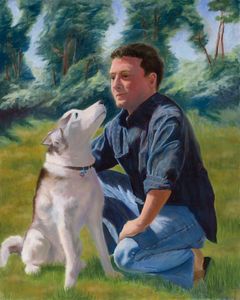 This is a portrait of the son of a very dear friend and his dog. After sifting through many pictures, this one was chosen as a favorite. The love the dog has for his master is witnessed by the way he looks at “his” person.